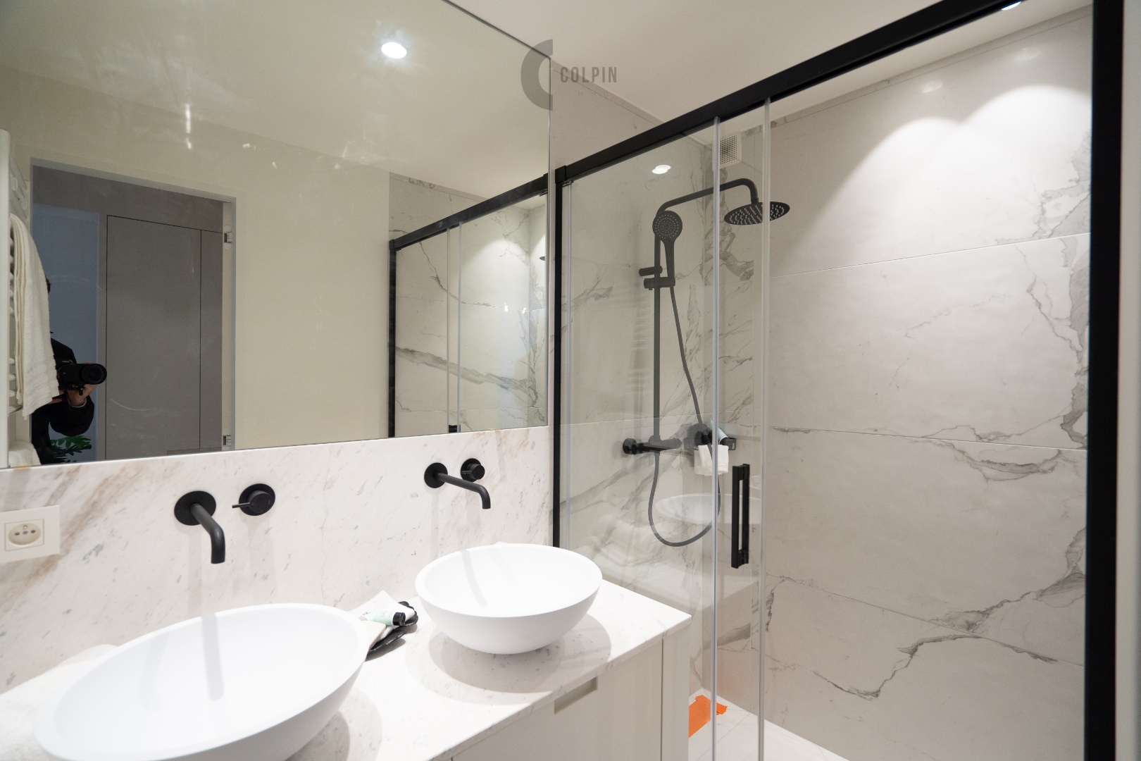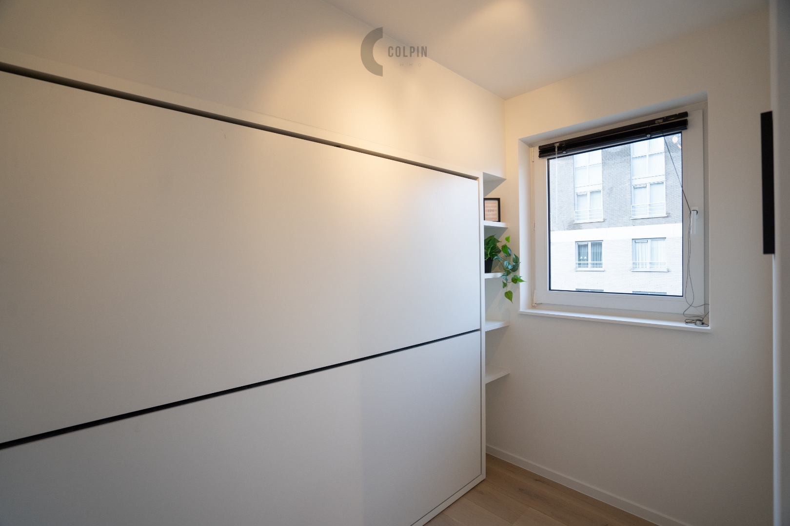 INDELING: inkom met vestiaire en gastentoilet. Volledig geïnstalleerde open keuken, ruime woon- en eetkamer, 2 slaapkamers, douchekamer.