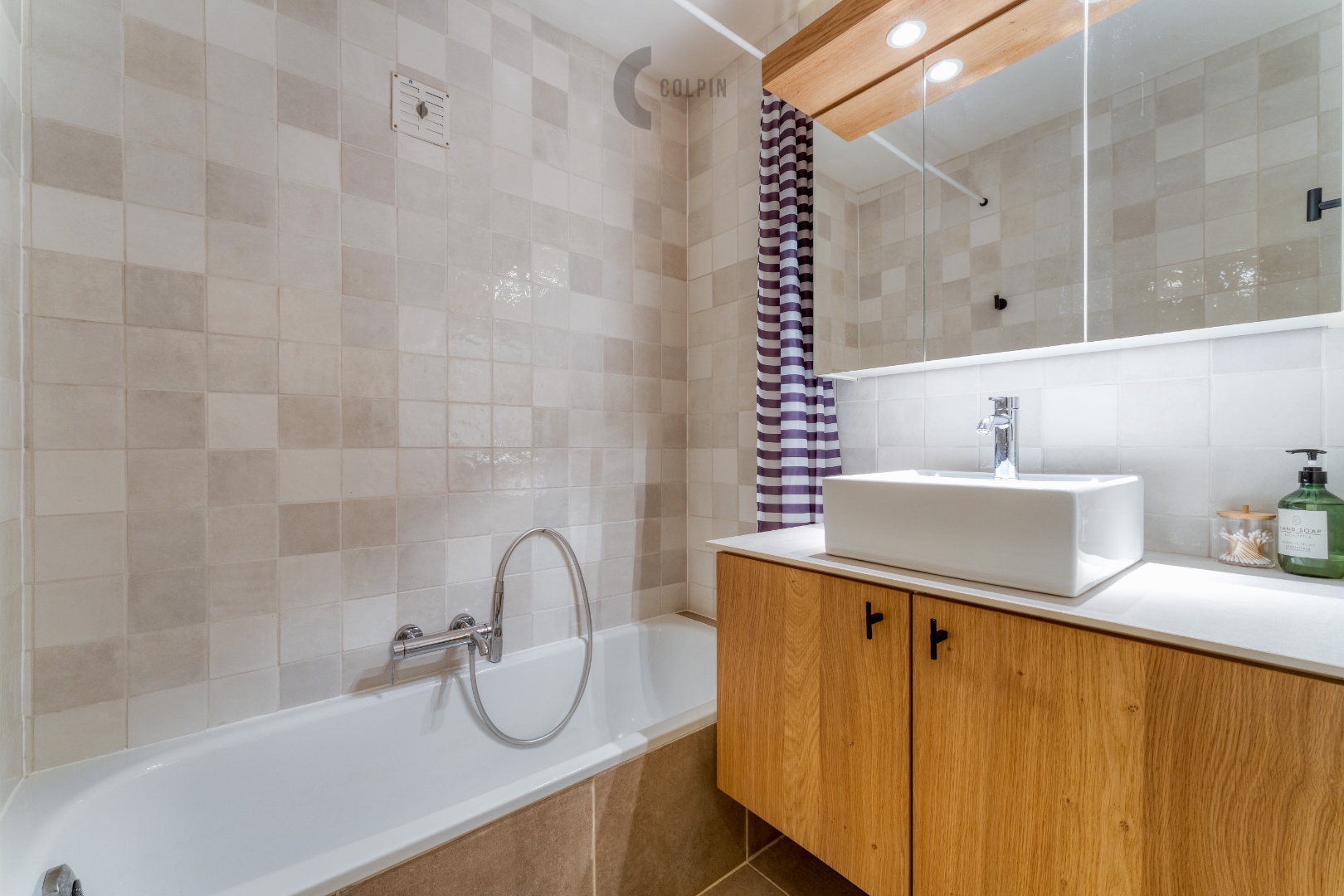 La chambre spacieuse garantit calme et confort, tandis que la salle de bains avec une bains, apporte une touche de luxe et de modernité.