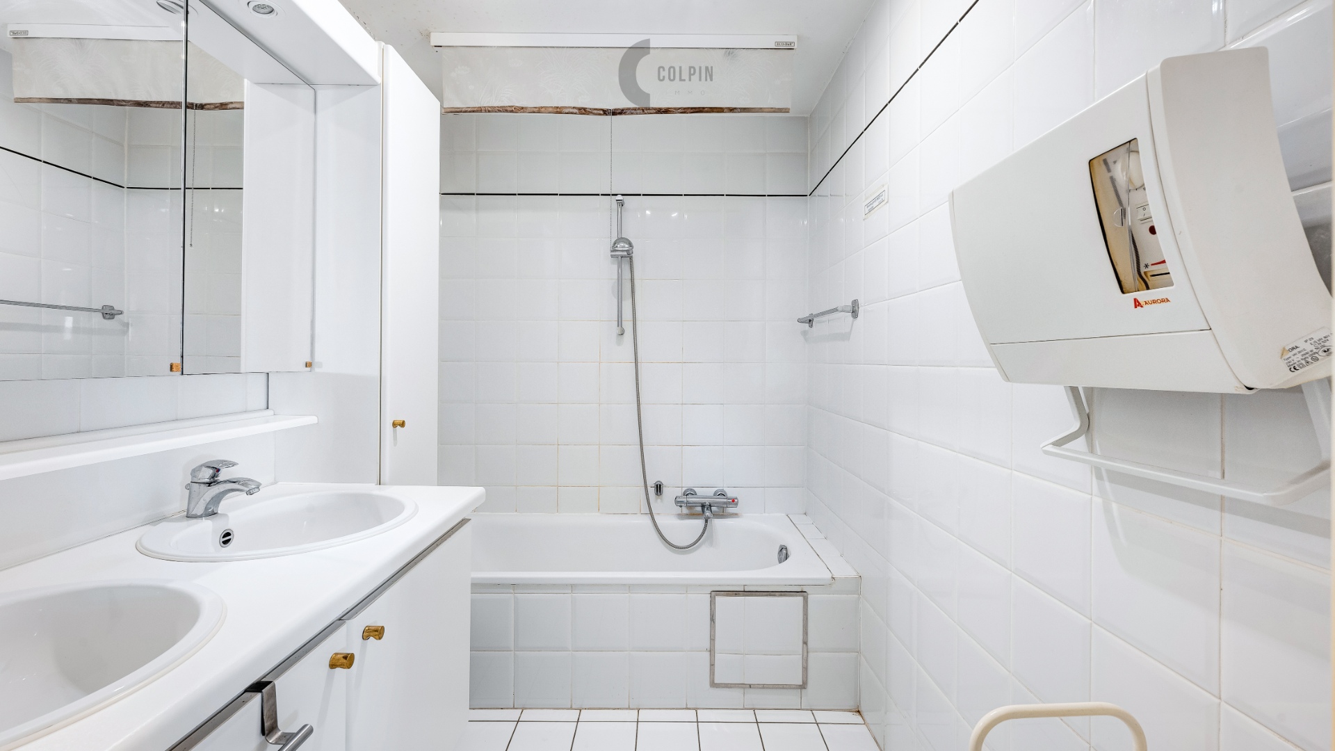 Composition : hall d'entrée avec placards intégrés, spacieux séjour, cuisine semi-ouverte équipée, 2 chambres à coucher et une 3e chambre pouvant accueillir un lit double ou servir de vestiaire/bureau, salle de bains avec baignoire et double lavabo, toilettes séparées et débarras. Extras : cave privée comme espace de rangement supplémentaire, local à vélos commun et local à poubelles. Idéalement situé dans la zone touristique où la location de vacances est autorisée.