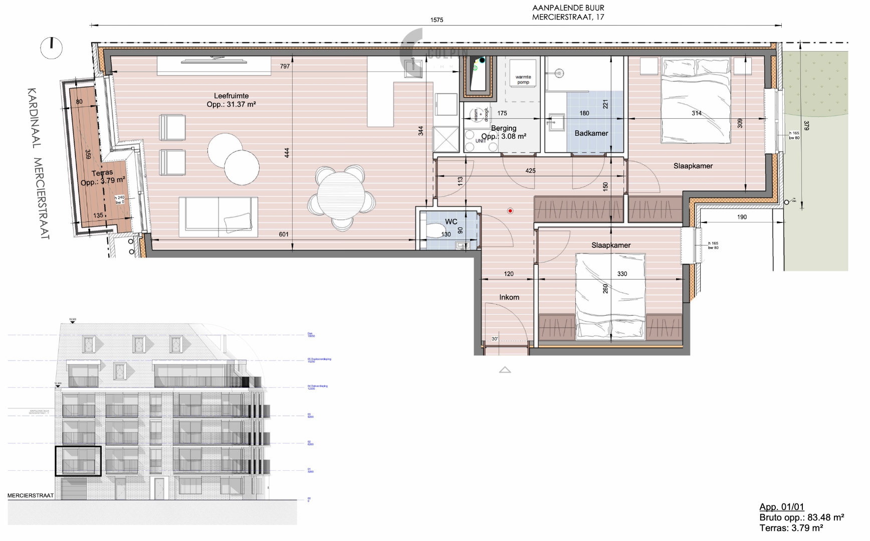 Un atout supplémentaire est la hauteur de construction plus basse dans la Kerkstraat (un étage de moins que le projet), ce qui garantit une meilleure luminosité et une sensation d’ouverture. Combiné à une orientation favorable, cela offre beaucoup de soleil et un cadre de vie agréable.