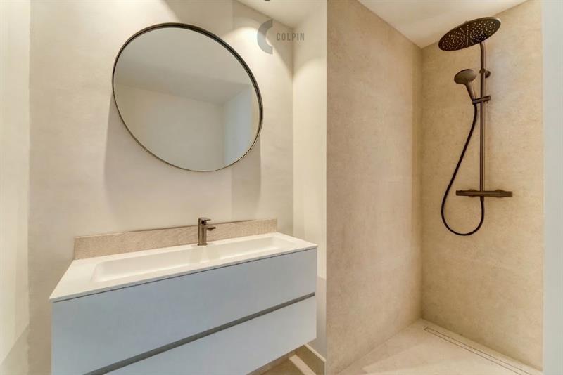 Verder beschikt dit appartement nog over een volledig geïnstalleerde open keuken, inkomhal met mogelijkheid tot vestiaire, apart toilet, ruime berging, 3 ruime slaapkamers (elk geschikt om een dubbel bed EN kasten te plaatsen), 2 douchekamers, en 1 grote ensuite badkamer.