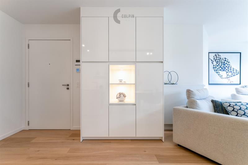 Gemeubeld appartement in een recente residentie in het centrum van Knokke. Indeling: Verdieping 1: Inkomhal met aangename en lichtrijke leefruimte uitgevend op een westgericht terras. Volledig uitgeruste keuken. Volwaardige slaapkamer met een douchekamer. Gastentoilet. Verdieping 0: Volwaardige slaapkamer met aansluitende douchekamer. Berging met aansluiting voor een wasmachine en toilet. Twee kelders. Fietsenberging.