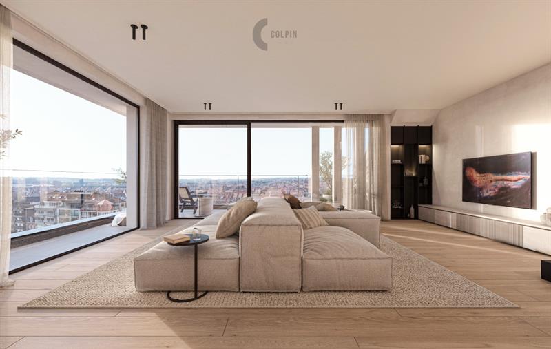 Dit is geen standaard appartement aan de kust. Door de samenvoeging van twee volledige units beslaat dit eigendom de volledige diepte van het gebouw. Dit geeft een uitzonderlijk volume van 150 m² waar licht van ’s ochtends tot ’s avonds vrij spel heeft.