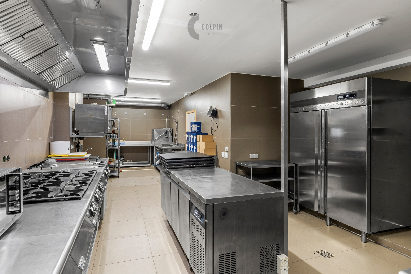 Het pand beschikt over een volledig uitgeruste industriële keuken, ideaal voor een restaurant, brasserie of tearoom. Deze omvat onder meer moderne professionele toestellen, vetafscheider, koelcel en uitgebreide werkzones. Daarnaast is er een tweede warme keuken die extra capaciteit biedt tijdens piekmomenten. De afgewerkte bar is voorzien van spoelbakken en roestvrijstalen koelinstallaties. In de kelder van 140 m² is er ruime opslagmogelijkheid voor voorraad, dranken en/of terrasmeubilair. Een aparte leveranciersingang zorgt voor een vlotte en efficiënte logistiek.