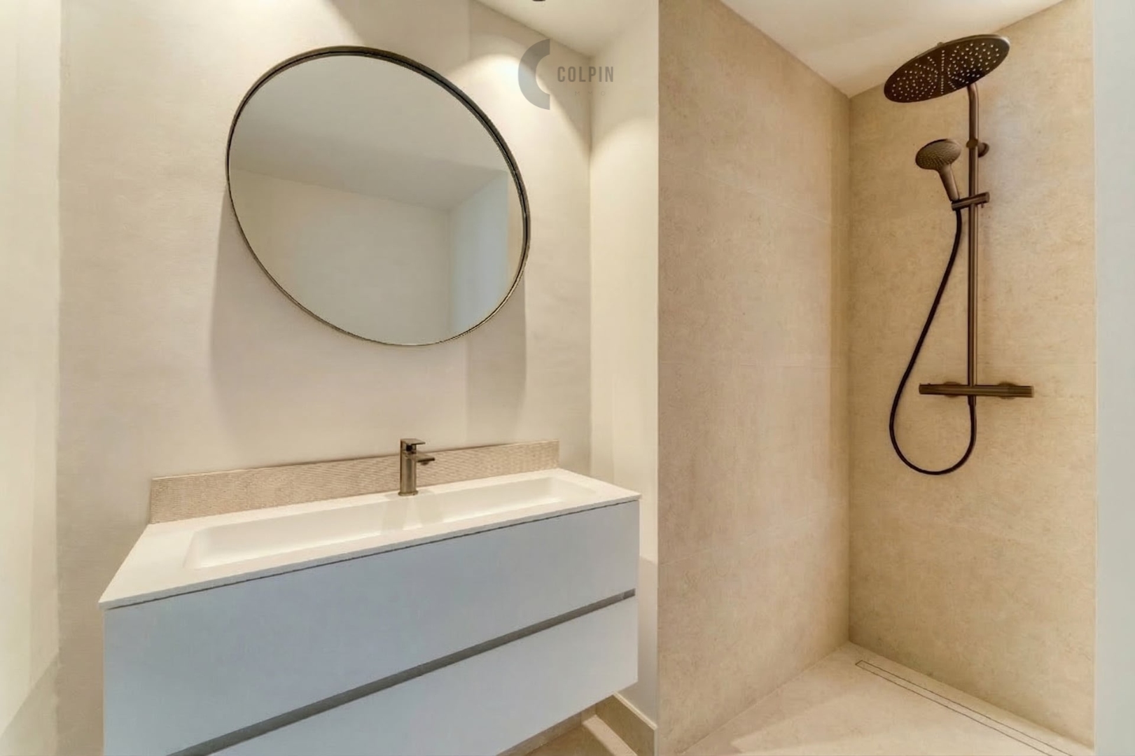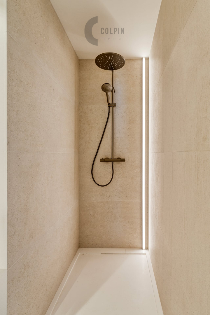 Een tweede douchekamer is uitgerust met een inloopdouche met regendouchekop en wastafel. Verder beschikt het appartement over een praktische berging met aansluiting voor wasmachine en droogkast.