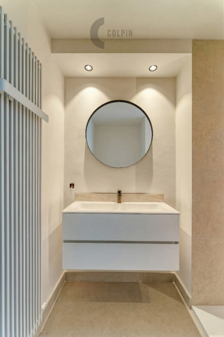 De master bedroom beschikt bovendien over een ensuite badkamer met design bad, dubbele wastafel en toilet.