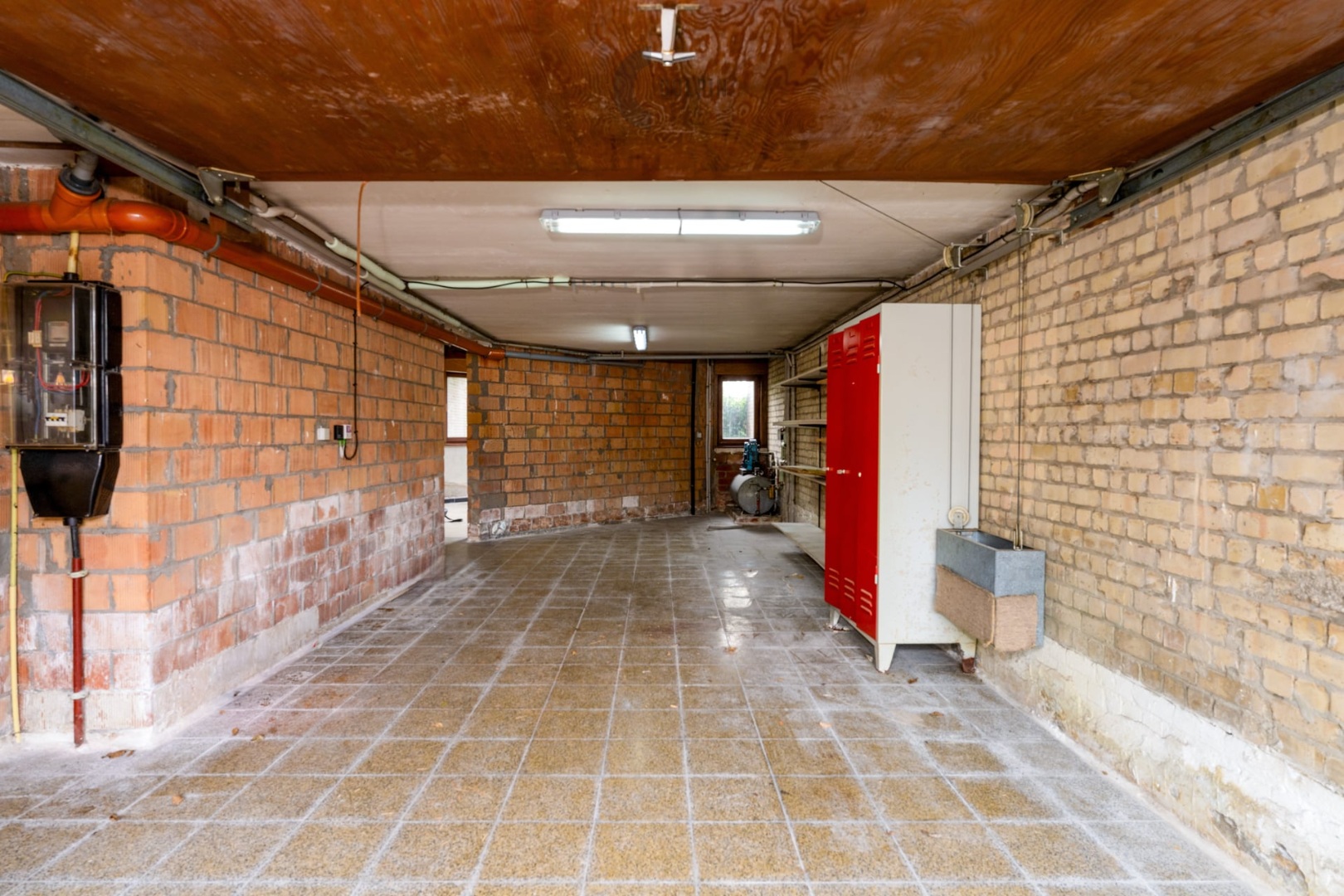 Bij aankomst geniet u van een praktische oprit en een ruime garage van maar liefst 34 m², ideaal voor wagen, fietsen en extra opslag.