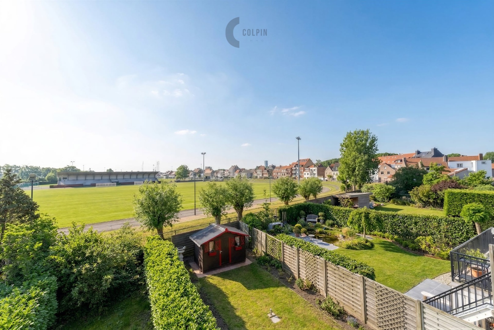 In de tuin geniet u de hele dag van de zon en van een vrij, open zicht achteraan op het voetbalveld, zonder inkijk.